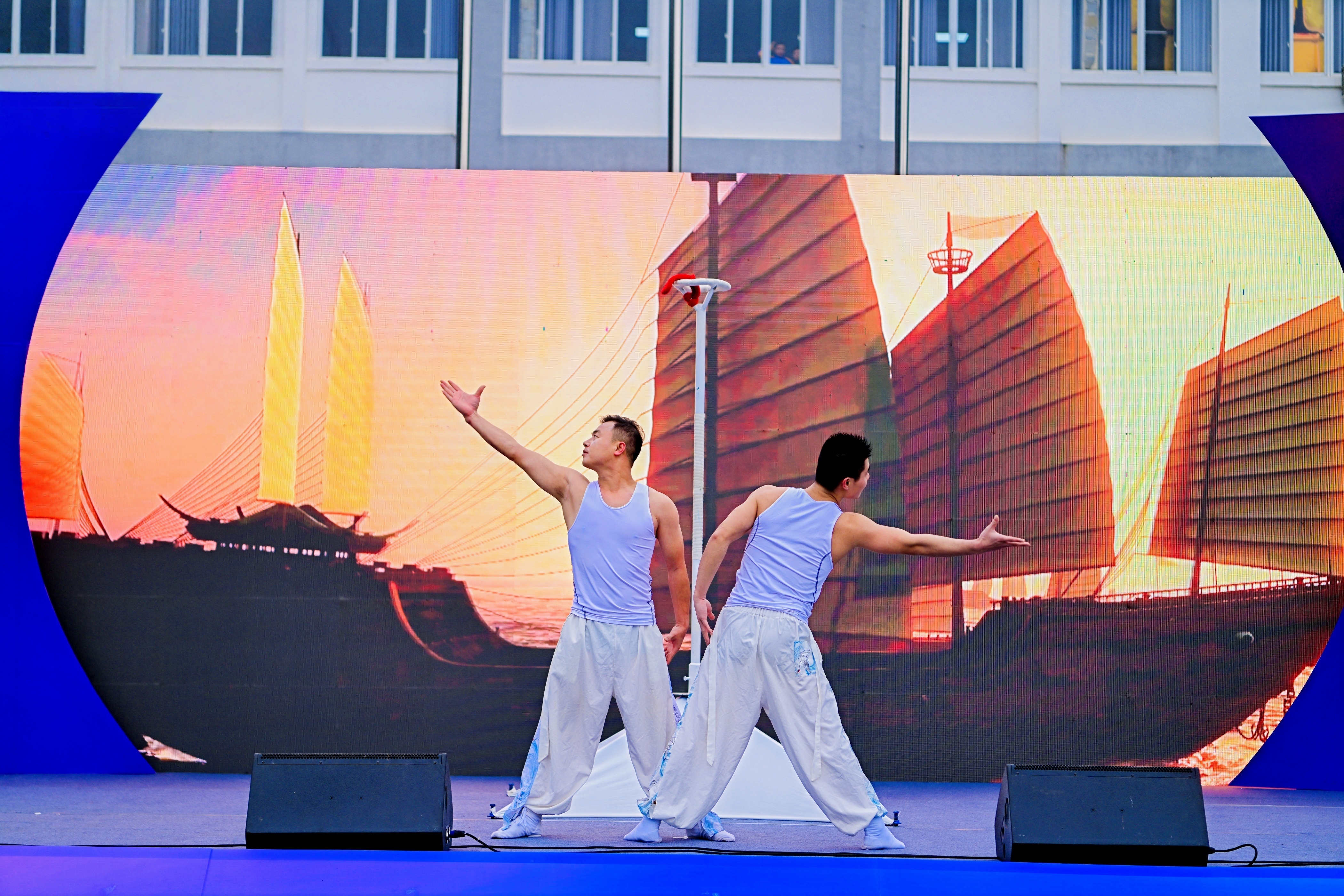 歌声与舞蹈,为“硬核”的工地增添了暖色与活力。歌伴舞《劳动畅想曲》唱出了新时代劳动者的豪迈情怀;杂技《鼎力前行》以高难度技巧,隐喻建设者迎难而上、攻坚克难的坚韧品格;舞蹈《众人划桨开大船》生动展现了工程人团结协作、众志成城的磅礴力量;音诗画《我骄傲,我是中铁人》,道出了四海为家的建设者心底那份为国铺路的深沉情怀。这些节目源于一线,致敬一线,赢得了阵阵热烈掌声,现场观众纷纷举起手机记录,脸上洋溢着难得的放松与欢笑。