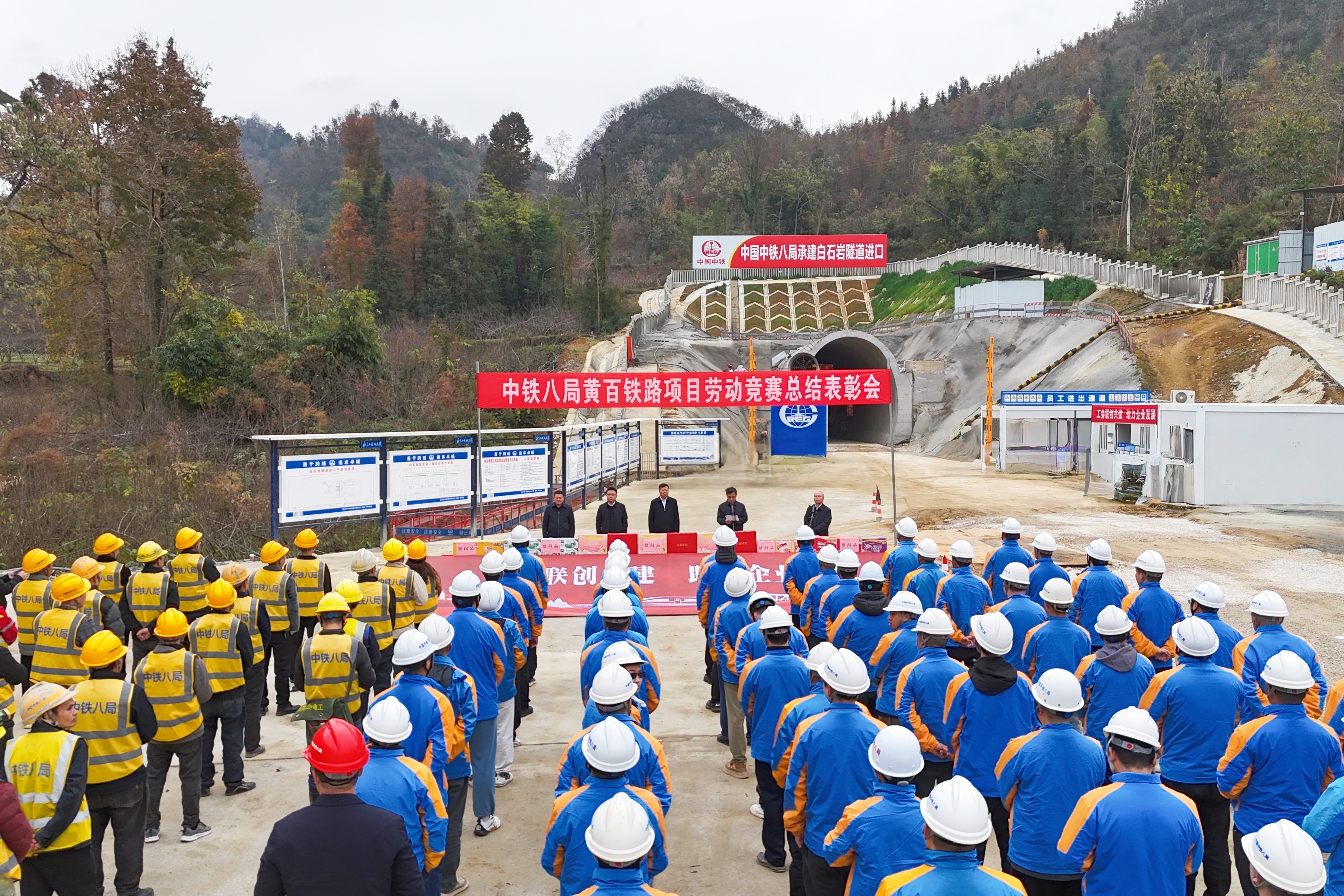 12月25日,由集团公司工会主办、三公司工会承办的“比学赶超 建功黄百”劳动竞赛总结表彰大会在黄百铁路白石岩隧道进口举行,标志着此次劳动竞赛圆满收官。集团公司党委常委、纪委书记李家标出席大会。