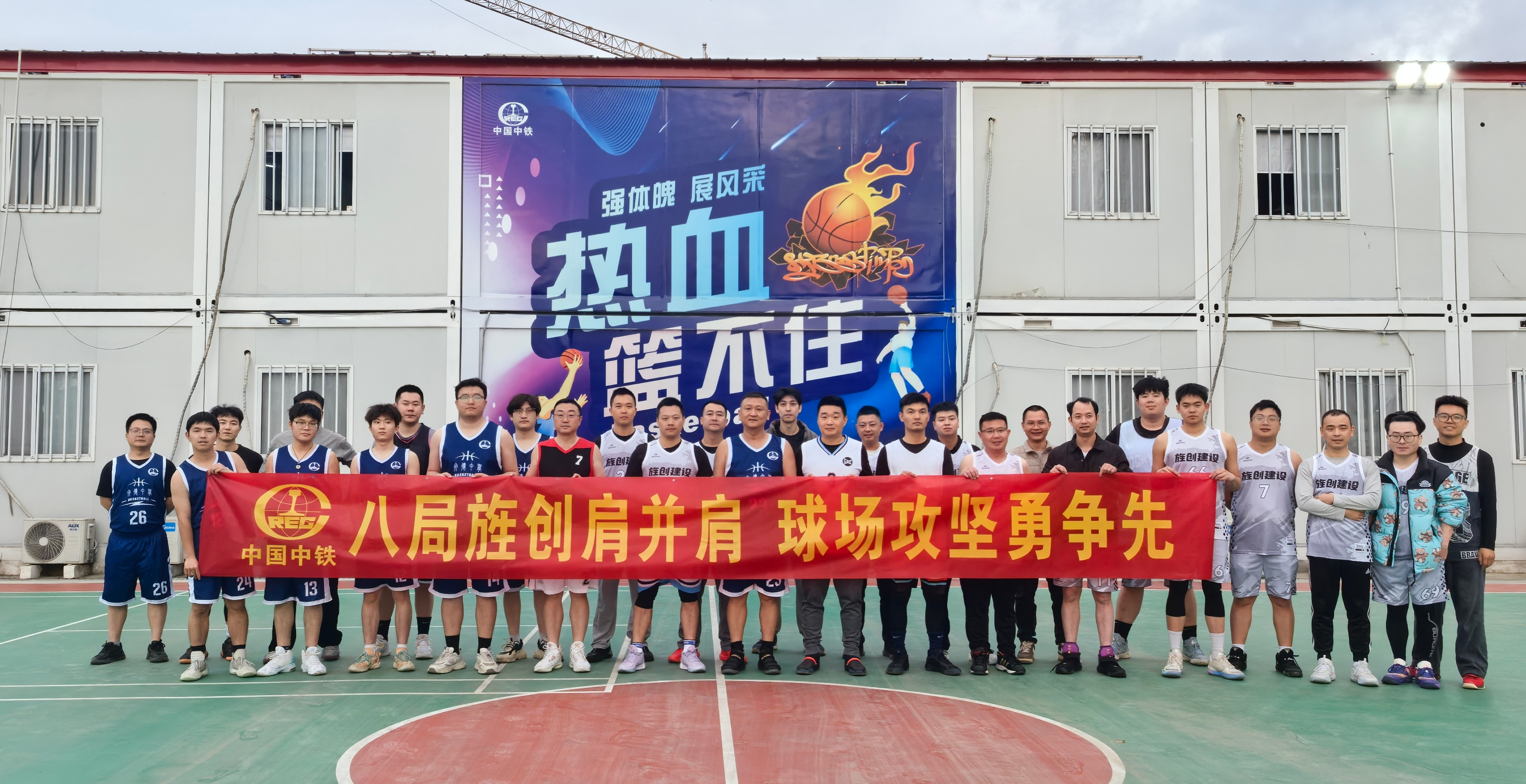 “八局旌创肩并肩 球场攻坚勇争先”—— 德阳文德中学项目部联合德阳市旌创建设发展集团有限公司开展篮球友谊赛