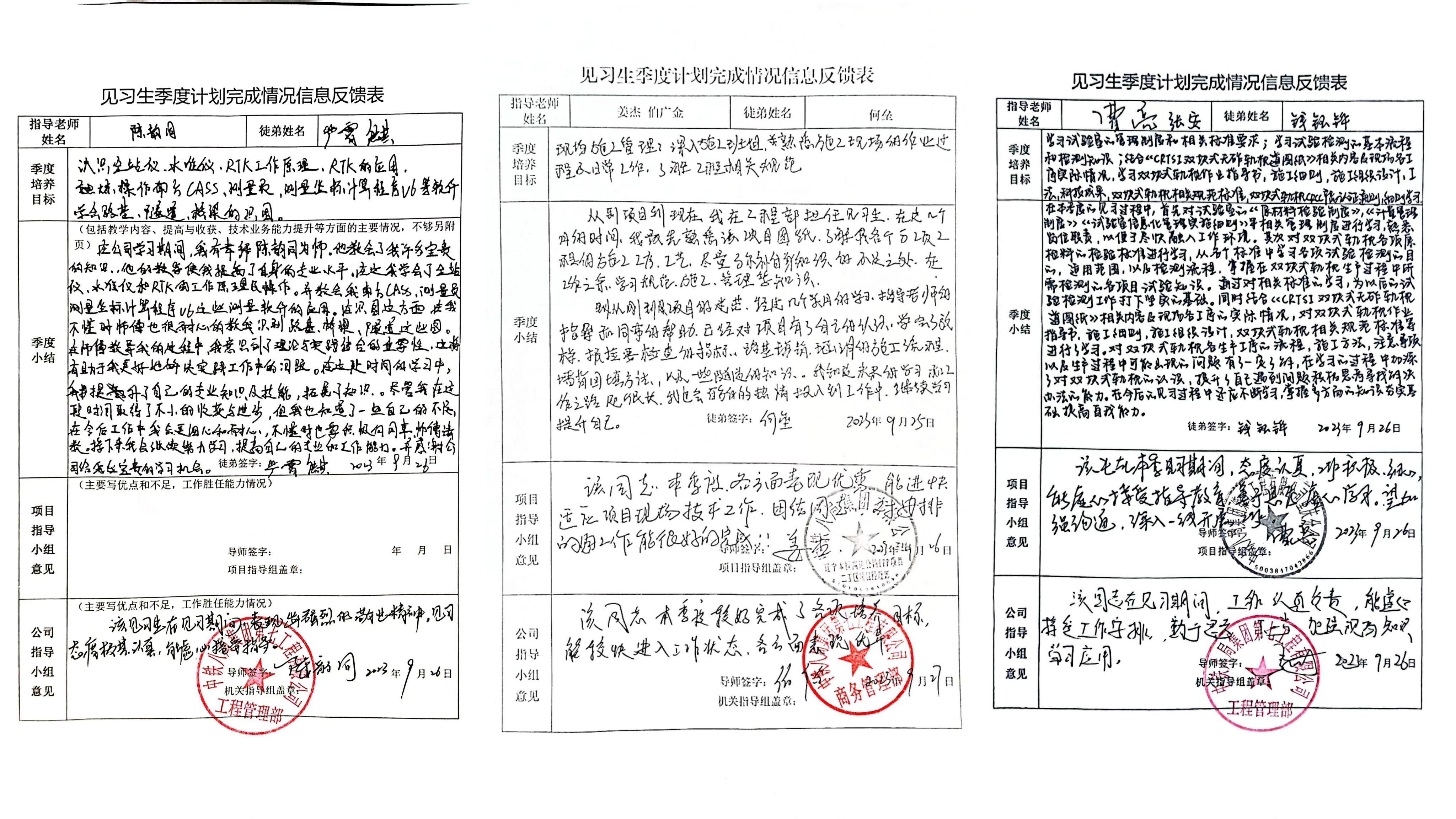 季度末是检验见习成果的时候,下面来看一下各项目新员工本季度的收货和总结及导师对他们的评价。