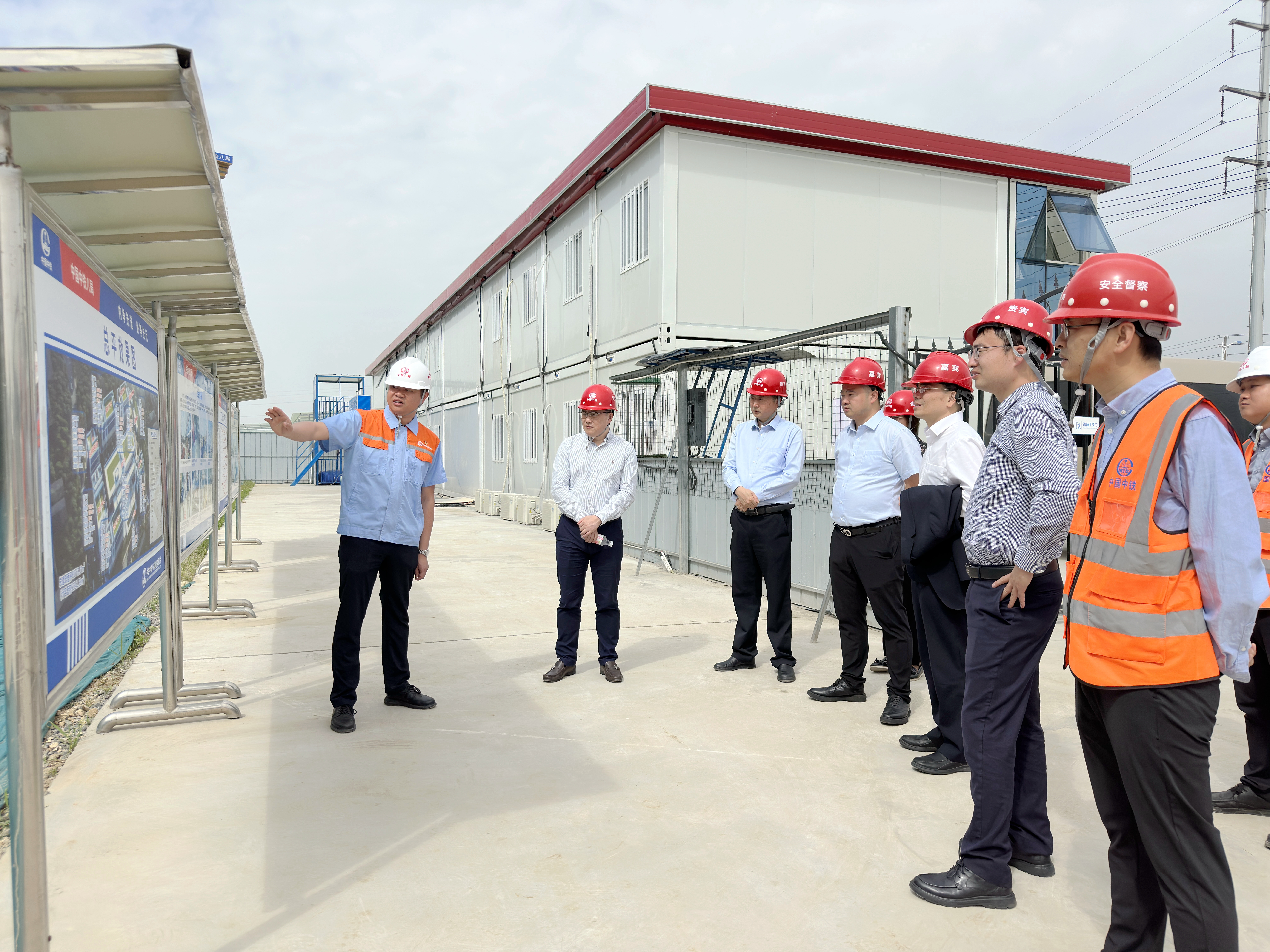 薛炳海一行深入施工现场,实地调研了绵竹科技服务中心项目的施工生产情况,听取了项目工程概况、现场施工进度、安全质量管理等方面的介绍,对项目现阶段的工作给予肯定,并对中铁八局在绵竹市建设发展中做出的贡献表示肯定。