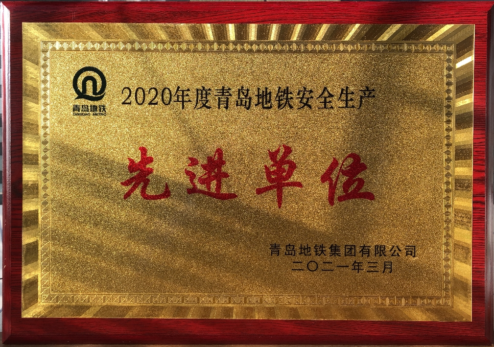 近日,从青岛地铁集团获悉,公司承建的青岛地铁被授予2020年度青岛地铁“安全生产先进单位”“安全生产先进班组”称号。