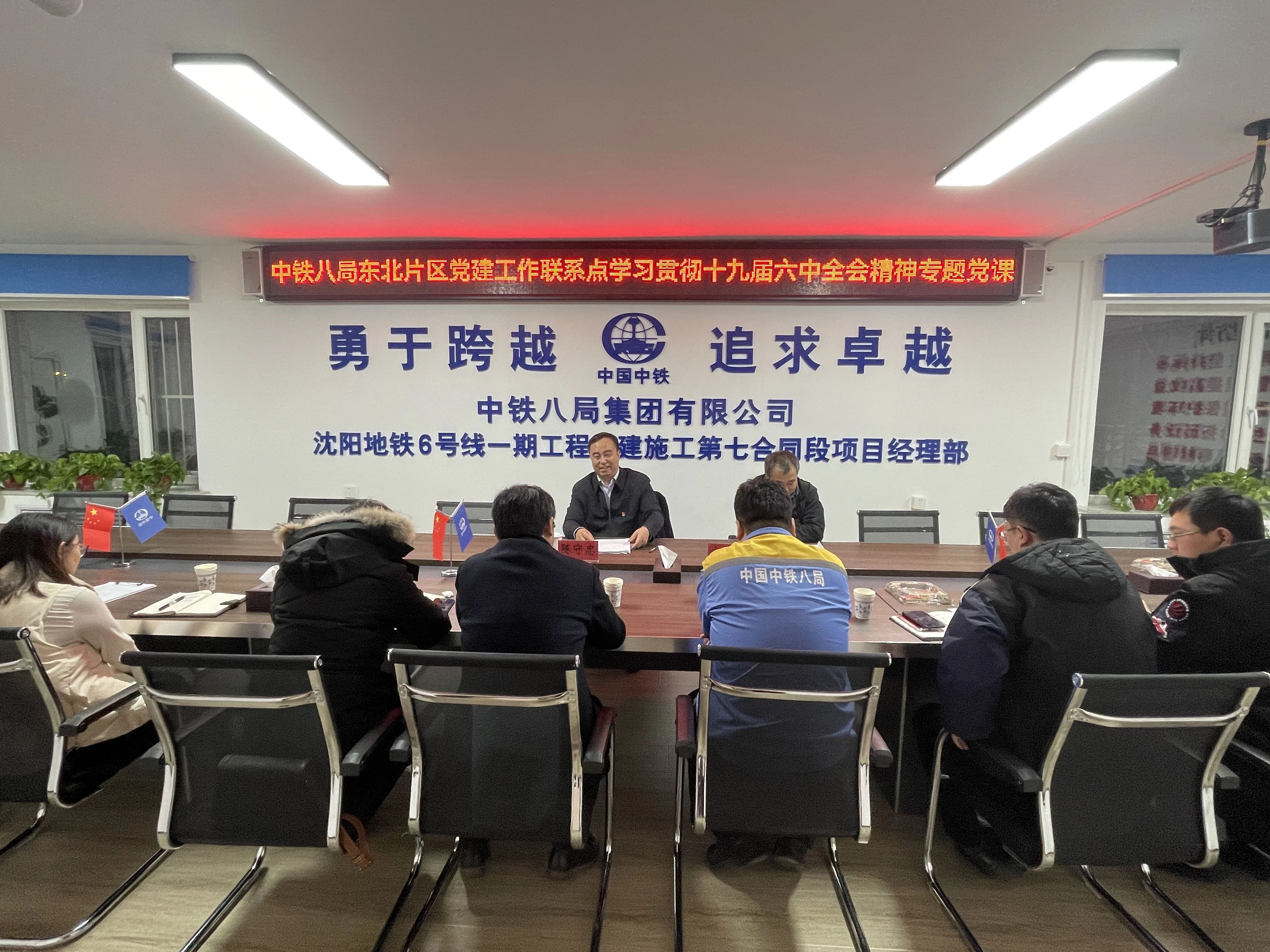 12月21日,中铁八局副总经理、总经济师陈守忠到基层党建联系点昆明公司沈阳项目部调研,并讲授党的十九届六中全会精神专题党课。