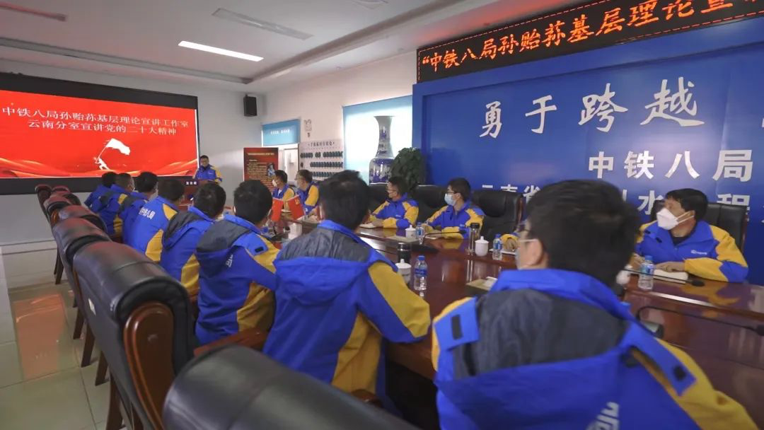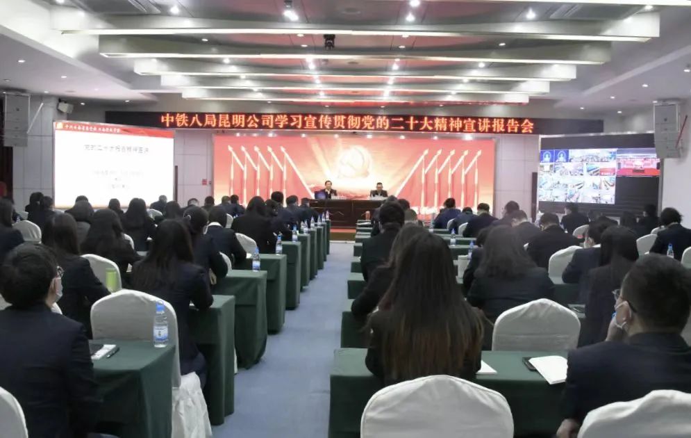 下好“先手棋”,抓牢“执牛耳”。昆明公司组织全体员工通过多种方式收听、收看了党的二十大直播盛况,确保掀起学习贯彻党的二十大精神热潮。同时,昆明公司党委及时组织召开学习党的二十大精神专题党委会和党委中心组理论学习,领导班子带头先学,实现“关键少数”引领。同时制定下发了《中铁八局昆明公司学习宣传贯彻党的二十大精神的实施方案》,对学习宣贯党的二十大精神工作做出全面部署。昆明公司主要领导带头讲授专题党课,其他班子成员深入项目党建联系点授课,全面系统准确地将党的二十大精神与企业实际相结合,确保全司员工对党的二十大精神认识到位、领会到位、落实到位。