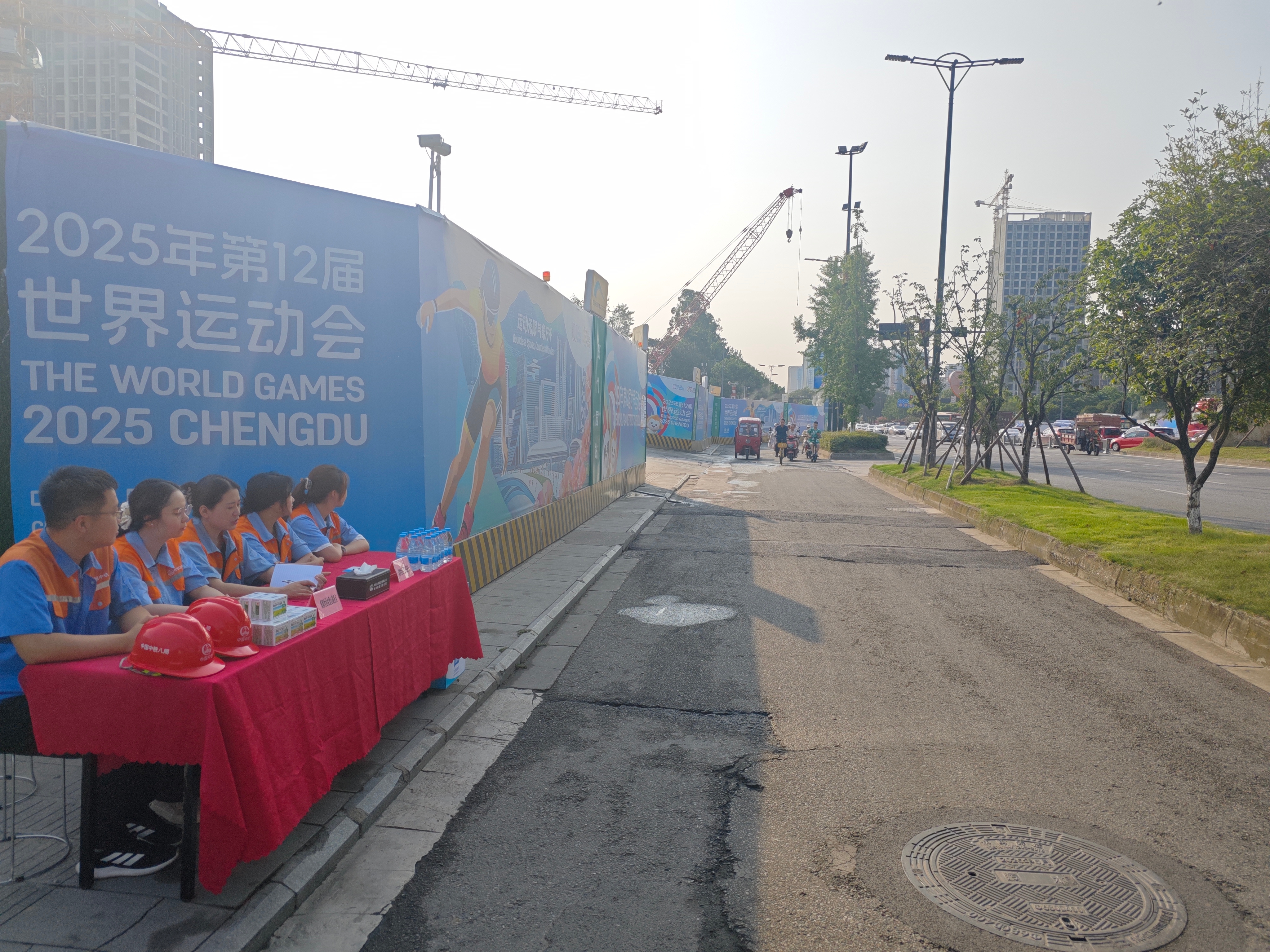 在全力推进工程建设的同时,项目部积极履行社会责任,在力所能及的范围内为项目周边提供帮助,彰显央企担当。在成都世运会期间,项目部主动为轮滑场馆打造周边比赛氛围,疏导场馆周边交通,组织党员和青年突击队做好赛事服务引导工作,为赛事顺利举办贡献力量。凤凰山体育公园位于项目站点对面,全年举办两百余场赛事活动,项目部将赛事配合工作融入日常,协助交管、城管做好交通指引和周边服务,为广大市民提供良好的观赛体验。此外,在各类应急抢险工作中,项目部积极响应,主动出击,冲锋在前,以实际行动诠释了央企的责任与担当。