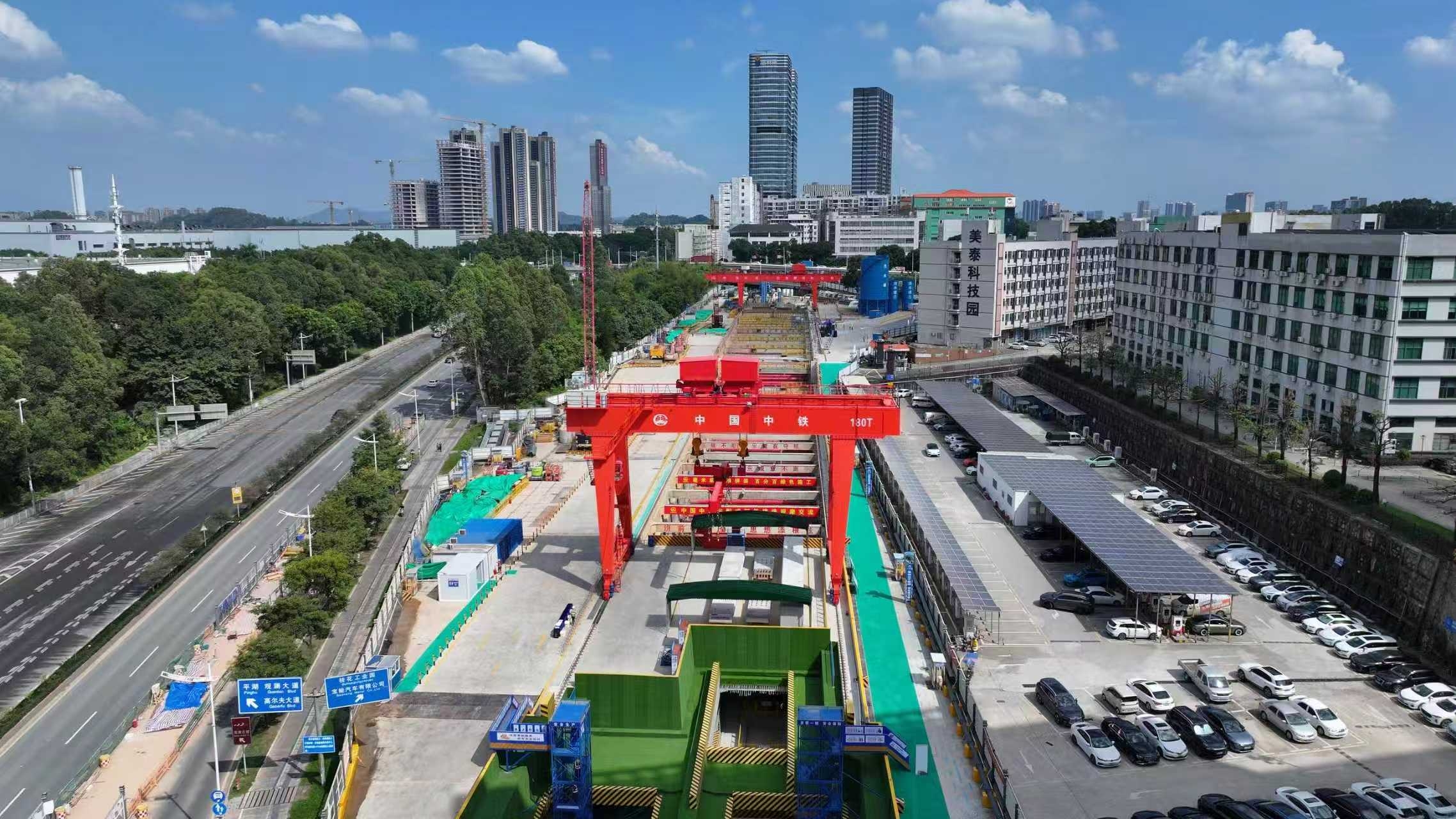 项目部坚持技术先行、创新驱动,全力攻克施工难题、推动建造方式升级。在施工过程中,充分运用智能建造技术,在桂花站集成应用180吨智能龙门吊、一体化拼装台车、高精度测量机器人等先进智能工装;创新构建“智、微、活、严”测量控制体系与“测、控、调、验”闭环精度控制体系,实现装配构件毫米级高效精准拼装,大幅提升施工工效。技术攻关与科研方面,全年编制论证施工方案49项,针对地连墙成槽质量等难点成立QC小组专项攻坚,将检测合格率从80%提升至100%,以科技创新赋能生产提质。凭借全预制装配式车站施工的优异表现,项目部高质量承办了“中国中铁装配式智能建造观摩交流会”,向全系统展示智能建造成套技术与管理成果,获评“可复制、可推广的示范样板”;同月,中国中铁地铁创新发展国际学术交流会组织40余名中外嘉宾到桂花站观摩交流,充分展现了企业的良好形象。