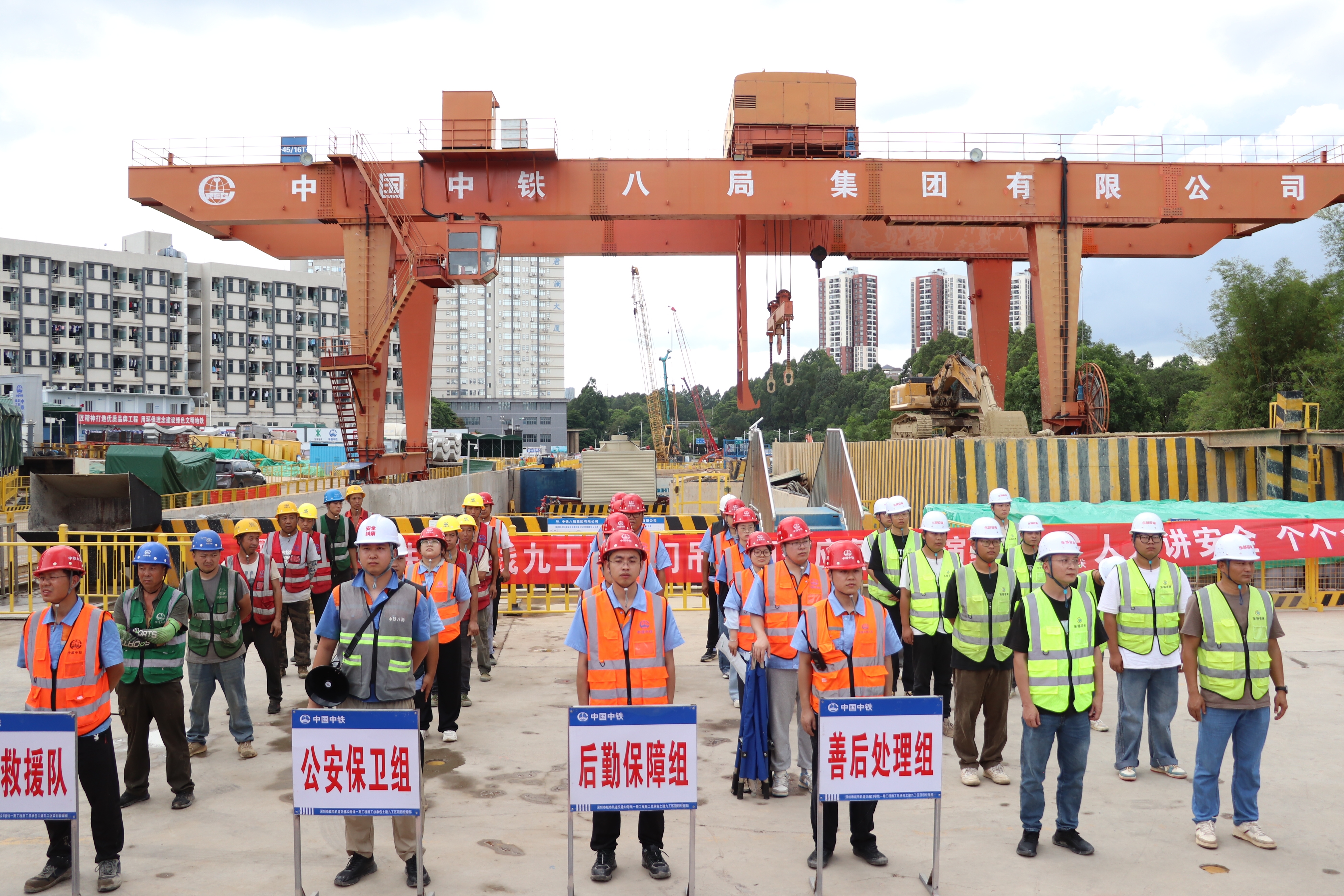 项目部将安全生产与环境保护视为不可逾越的红线,全力打造本质安全、绿色低碳示范工地,建立健全覆盖全员、全过程、全方位的安全生产责任制,严格执行二十一项安全质量管理制度,创新推行“三层三级”安全联检及“一月消一患”常态化隐患治理闭环机制;深度融合智慧建造,广泛运用智慧工地管理平台、深圳地铁安全管理平台实施动态监控,引入电瓶车AI防瞌睡报警装置、门吊智能警示灯、宇宙射线缪子成像探测技术强化风险超前预警,借助BIM技术开展吊装作业仿真模拟,全方位筑牢安全生产防线。绿色施工方面,项目部严格落实扬尘治理“7个100%”要求,系统采用360°高压雾桩喷淋、移动式隔音屏障、施工用水循环系统及太阳能光伏照明等节能环保措施,切实践行绿色发展理念。凭借卓越管控成效,项目部先后荣获“2025年度下半年深圳市建设工程安全生产与文明施工优良工地”“2025年度建筑施工噪声污染防治优秀项目”称号。