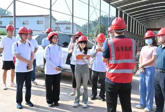 实践团一行先后参观了项目梁场、马边河大桥、武圣枢纽互通施工现场,听取了项目负责人就项目工程概况、关键工序、技术运用及施工重难点等情况介绍,并从公司的历史沿革、公司概况、企业文化和社会责任等方面,详细了解了公司的发展历程和重大成就。随后,双方围绕职业规划、工程技术革新、社会责任担当及爱国主义精神等方面展开了交流与分享,实践团队成员结合专业所学,重点阐述了党建引领企业发展中的关键作用,现场气氛热烈欢快。