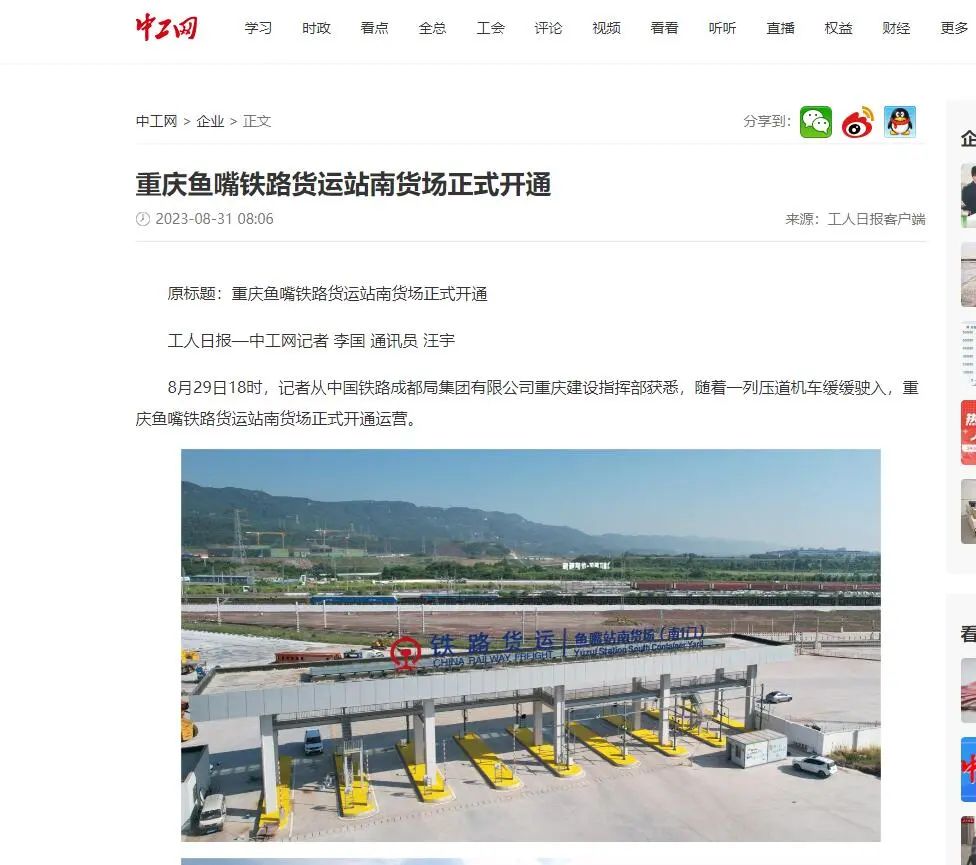 渝怀铁路鱼嘴站南货场正式开通