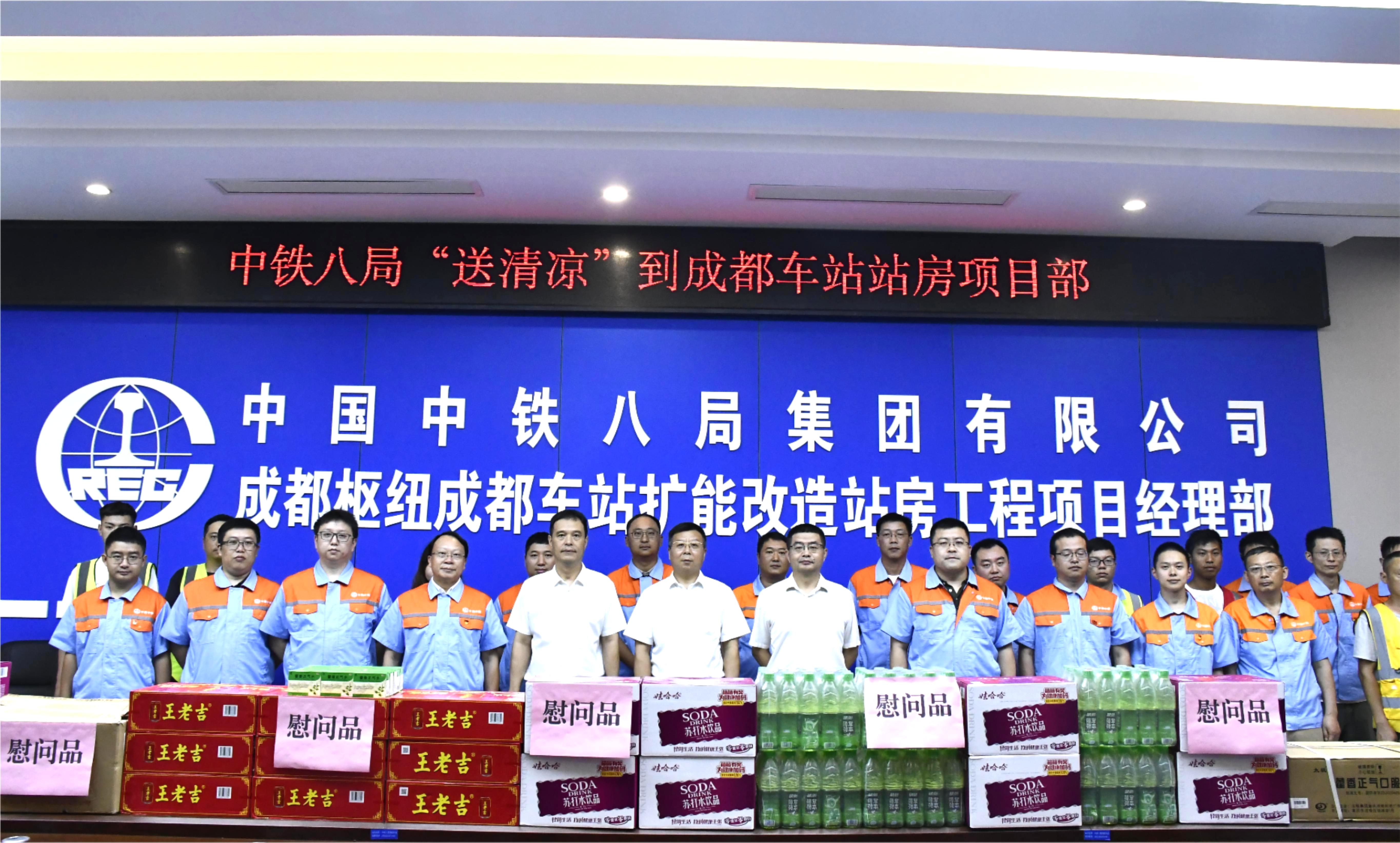 座谈完毕,李家标代表集团公司为辛勤奋战在施工一线的建设者们送上了防暑降温慰问品,向奋战在一线的员工表示诚挚的问候和感谢。