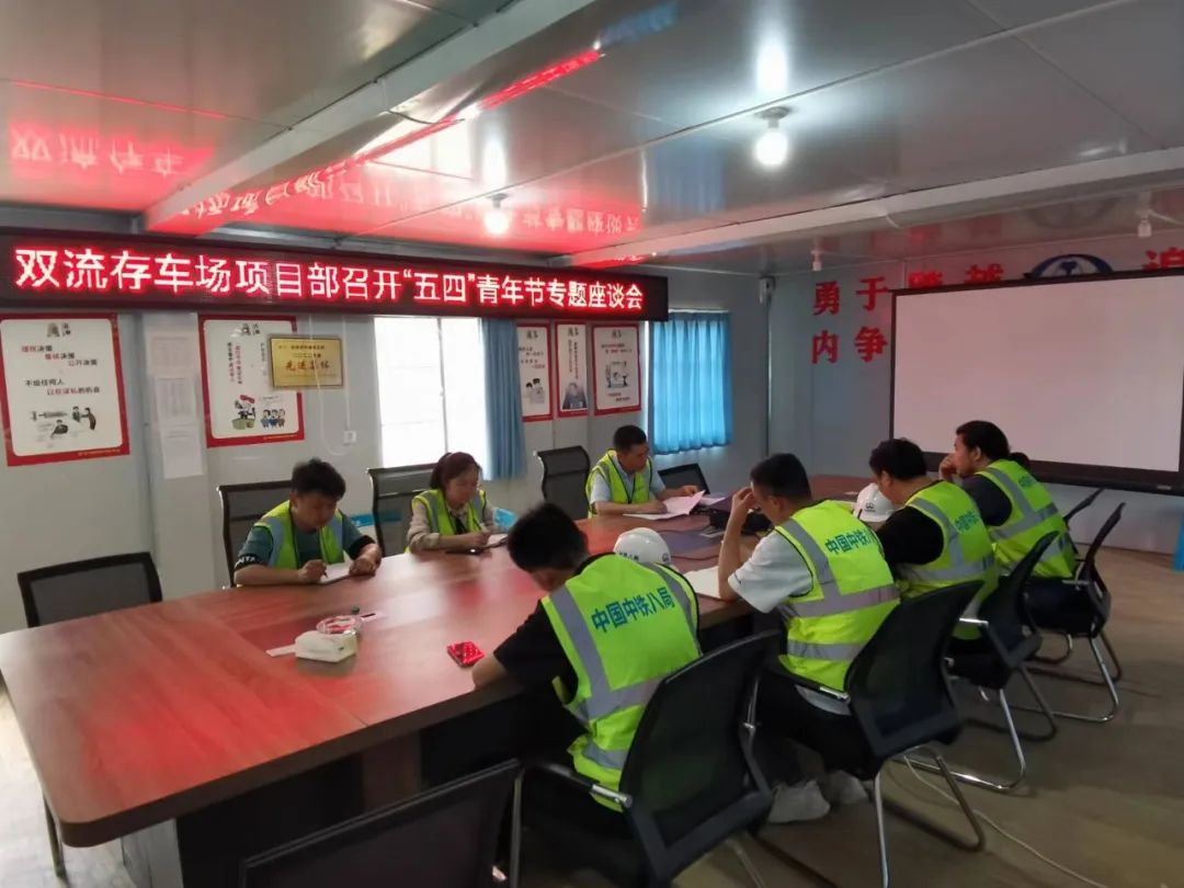 双流存车场项目部组织青年员工召开了以“廿载八局峥嵘路 逐梦青春正当时”为主题的“五四”青年节专题座谈会。此次座谈会在轻松、愉快的气氛中进行。会上,与会青年们踊跃发言,分别结合自身实际,敞开心扉,畅所欲言,畅谈了自己的思想和工作体会、分享成长的喜悦以及未来的憧憬,讨论“我与企业共成长”,提出在珍惜岗位,干好本职工作的前提下,提高工作效率,创造性的开展