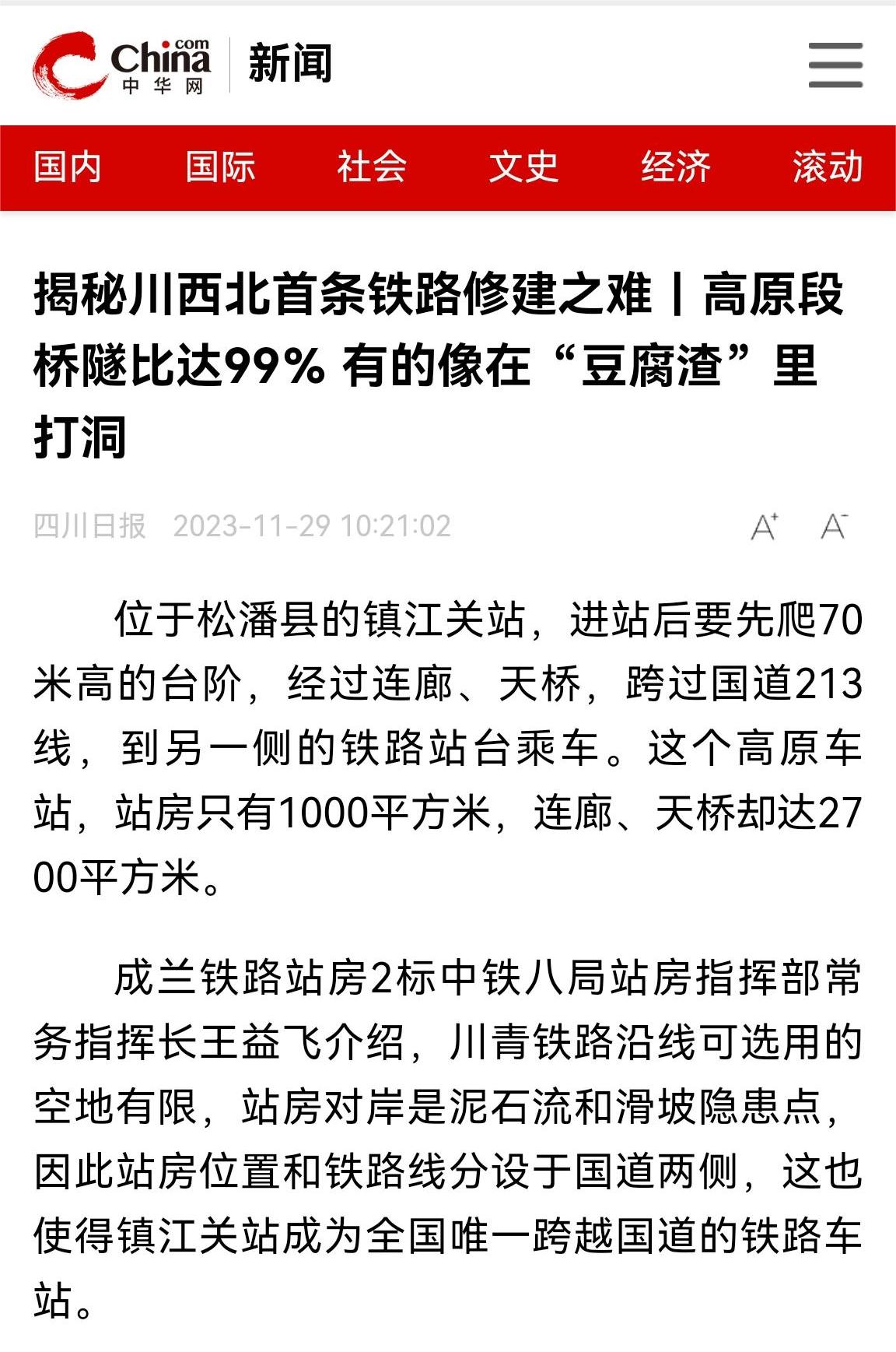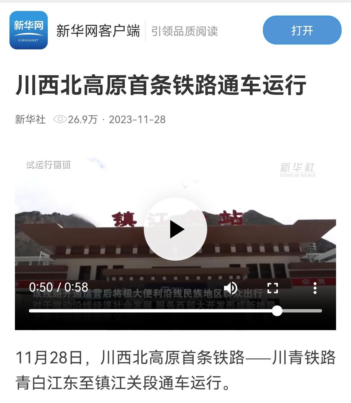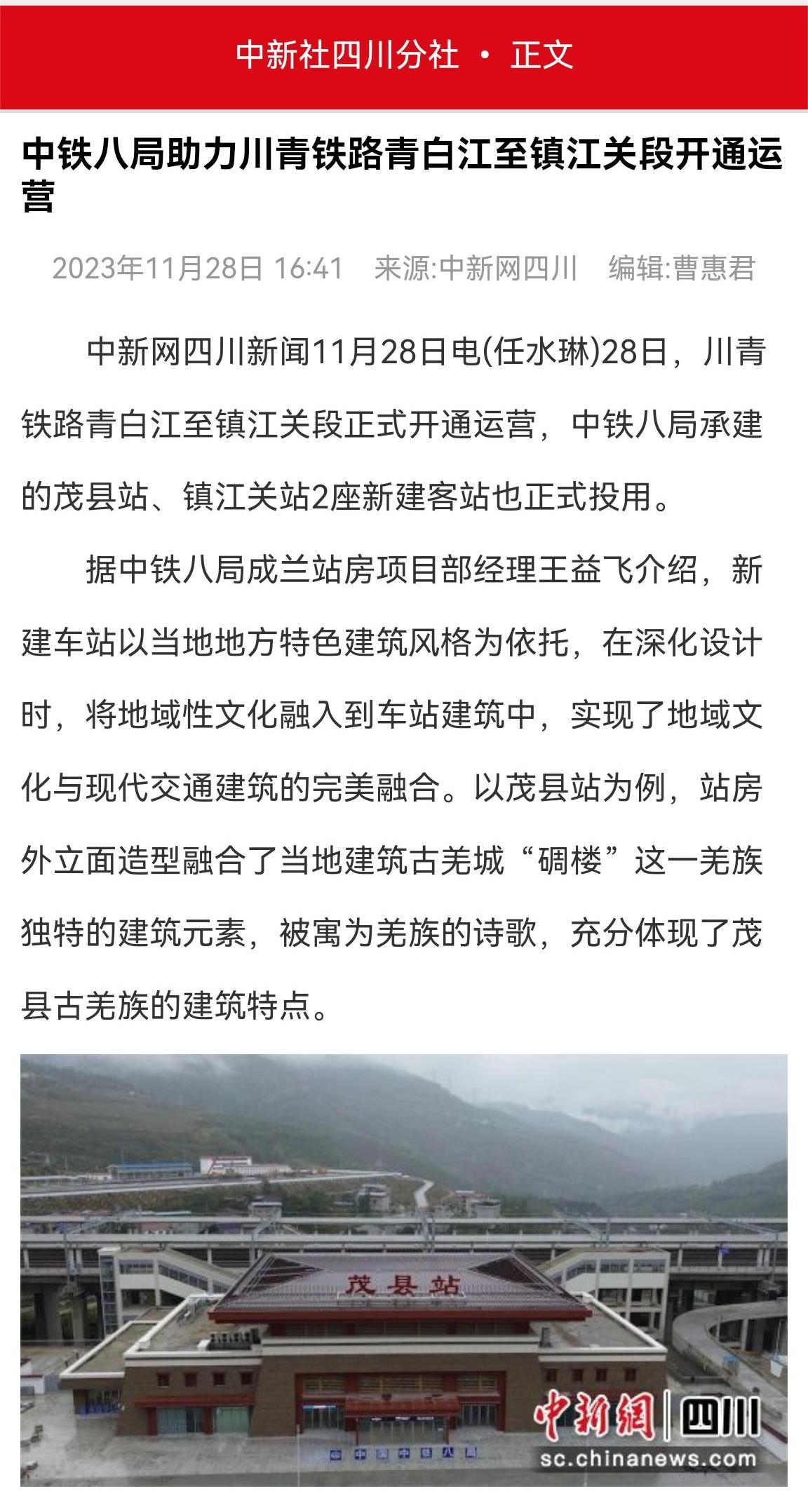 11月28日,随着川青铁路青白江至镇江关段正式开通运营,由中铁八局承建的茂县站、镇江关站2座新建客站正式投用。