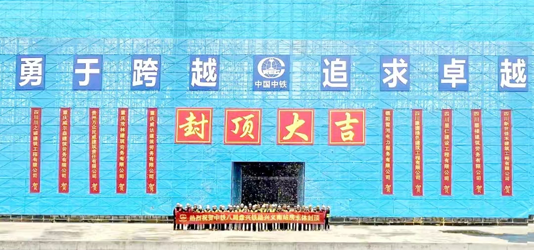 12月31日,由中铁八局承建的贵州盘州至兴义铁路(以下简称“盘兴铁路”)兴义南站站房主体顺利封顶,盘兴铁路建设“进度条”刷新。