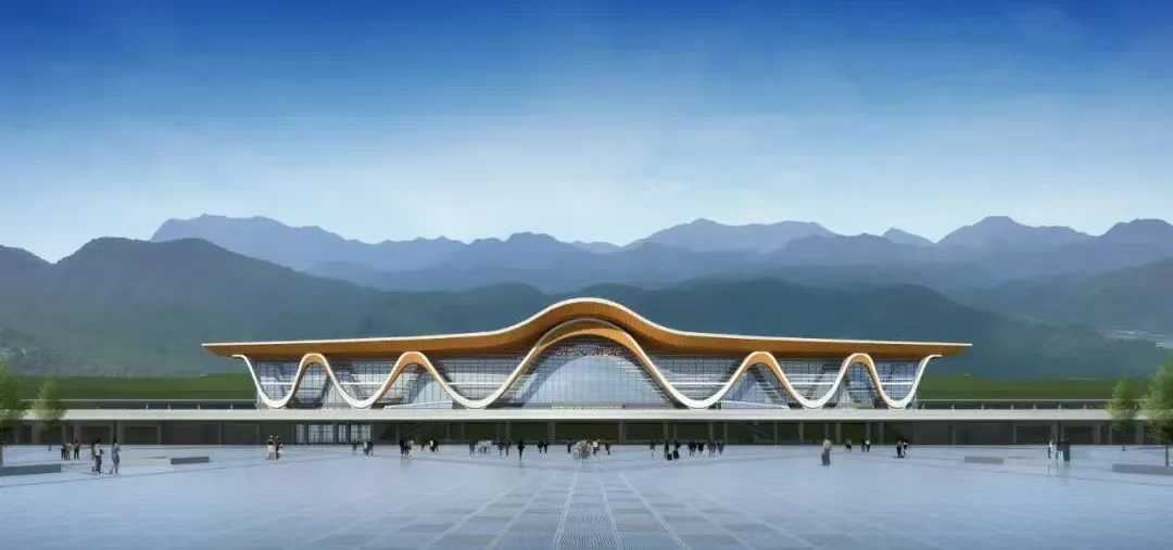 兴义南站是盘兴铁路首座完成主体结构封顶的高铁站房,站房建筑主体为现代风格,以“康养胜地、万峰成林”为建筑创意,屋顶根据建筑功能高低起伏,与兴义特有的喀斯特地貌、锥状山形遥相呼应,蕴藏着自然景观与民族文化和谐交融的美好寓意。站房为线侧平式站型,分为上下层,下进下出流线形式,车场规模3台5线,站房主体为钢筋混凝土框架结构,屋盖为薄腹钢管梁式结构,建筑面积约19954平方米,建筑高度约28米,于2024年8月20日开工建设,历时133天,完成站房混凝土主体结构施工。