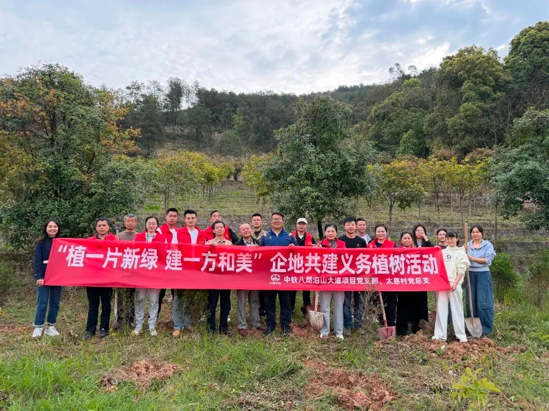 沿山大道项目党支部联合太慈村党总支开展“植一片新绿,建一方和美”企地共建植树活动。20余名党员职工与村民共同栽种桂花树近百株,以实际行动践行生态理念,在美化村居环境的同时,进一步深化企地情谊,为工程建设营造和谐外部环境。
