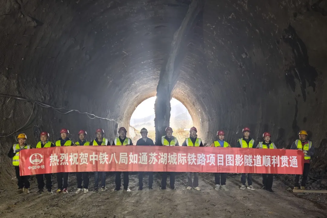 12月21日,由中铁八局承建的如通苏湖城际铁路土建7标图影隧道顺利贯通并完成仰拱初支全部封闭成环。