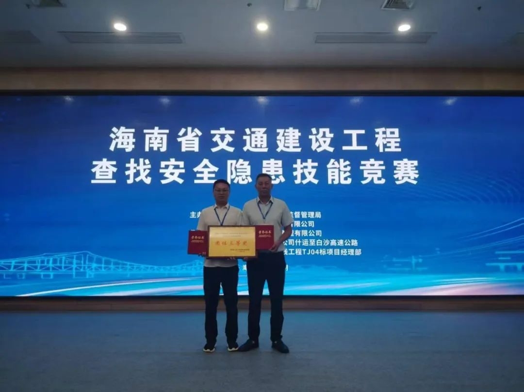 6月27日,海南环岛旅游公路项目部在海南省交通建设工程查找安全隐患技能竞赛中荣获团队三等奖。
