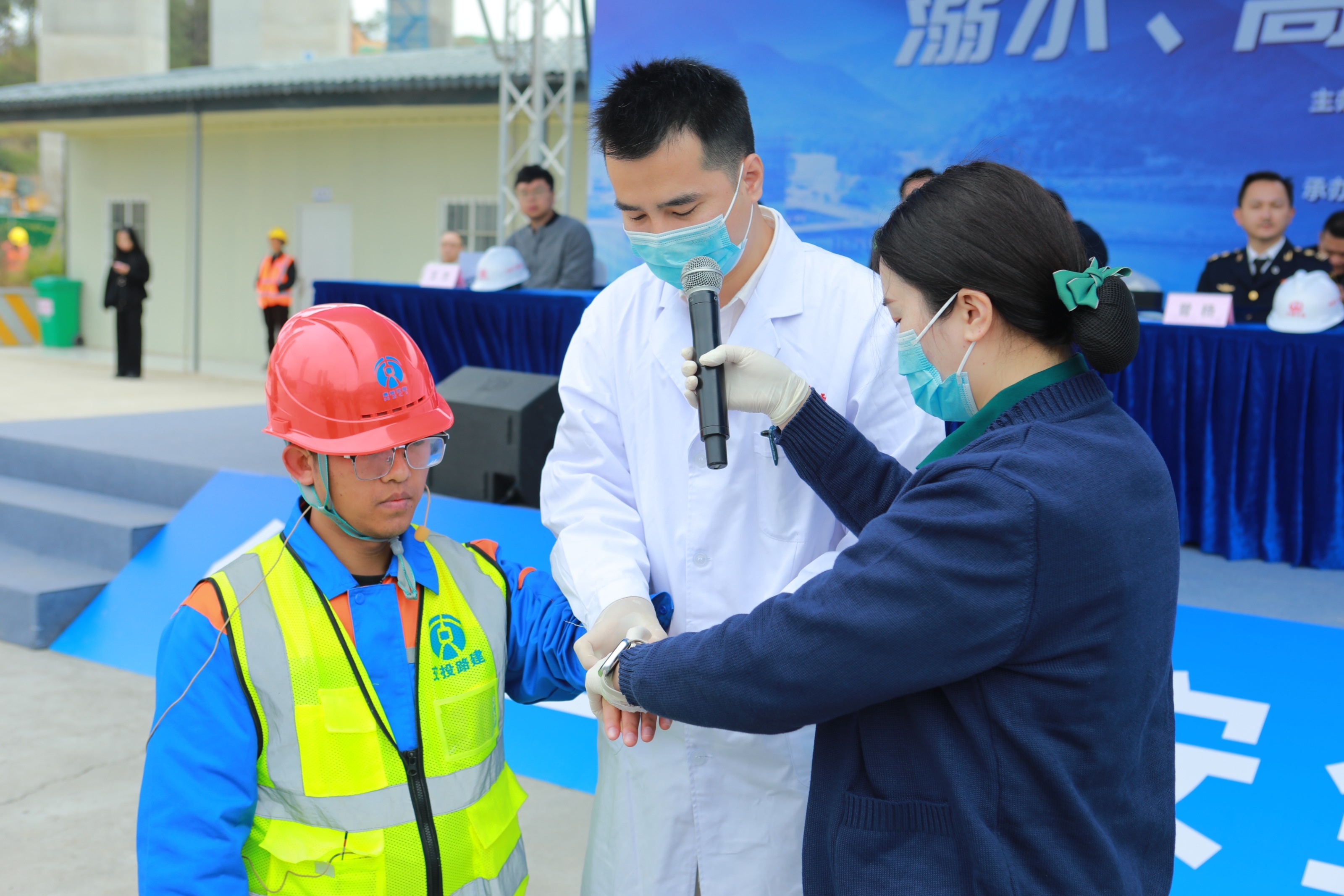 演练特别增设专业培训环节,项目部邀请惠东县第二人民医院副院长陈东来及相关医护人员现场授课,通过理论讲解与实操演示相结合的方式,系统传授心肺复苏、止血包扎等应急救治技能,帮助参训人员夯实急救知识基础,提升实操处置能力。